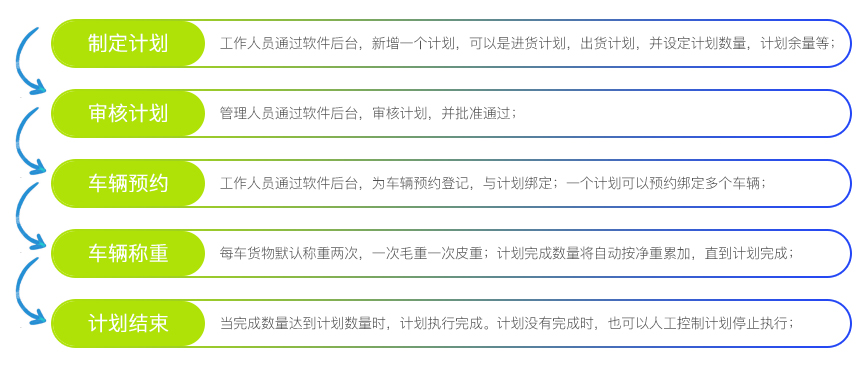 車輛上磅后:紅燈亮,入口道閘關閉;系統自動檢測停車位置,檢測發現異常時提示車輛前方或后方報警,告知司機移動車輛,直到檢測通過后,開始分析重量數據穩定,系統自動取重量,并多角度抓拍照片,最后保存數據;數據保存成功后,稱重完成,綠燈亮,出口道閘開啟,語音播報,提示可以下磅;